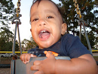 Today we had a cupcake party. Everyone who came had a great time playing at the park. Including Andrew who decided some of the kiddie toys looked fun. Omar was very excited by his first cupcake. Eli on the other hand knew what a cupcake was and had one a few times before, but he decided he would act as if he had never had one before. HAPPY BIRTHDAY TO OMAR!